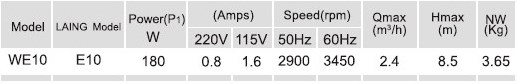 Les dimensions tuyauterie ainsi que les performances hydrauliques de la pompe LX WE10 sont identiques à celles des produits Laing série E. Cette pompe peut remplacer les pompes LAING E10.