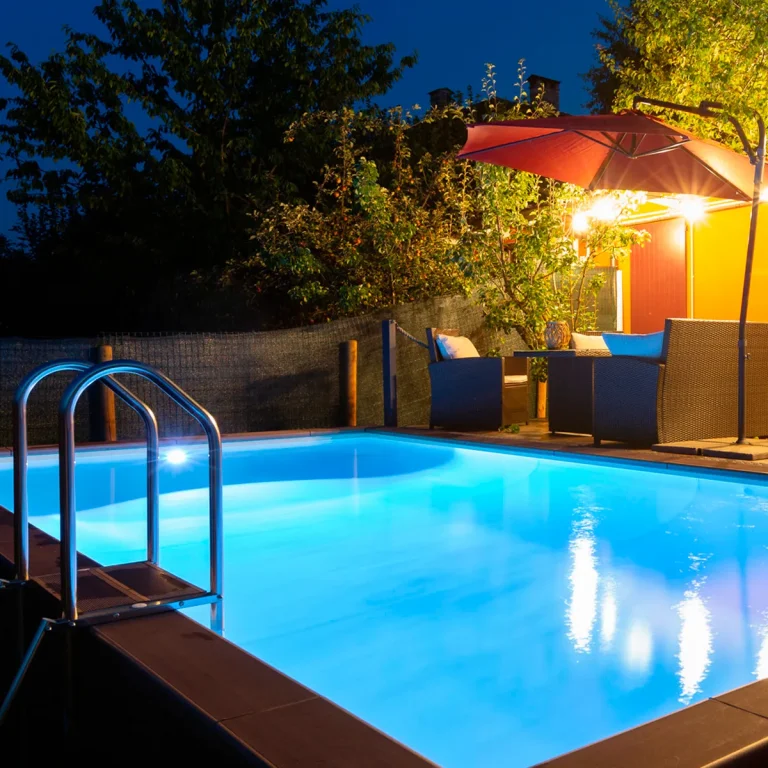 Chaque piscine Dolcevita prévoit la fourniture en série d’un ou deux spots LED blancs (en fonction de la taille choisie) de la ligne Laghetto placés sur la toile du bassin et qui offrent des jeux de lumière, de jour comme de nuit.